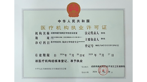 成都高新海枫医学检验实验室成立于2024年6月,已取得医疗机构执业许可证,遵循ISO15189质量标准构建全流程管理体系,可对外开展质谱相关医学检验服务。